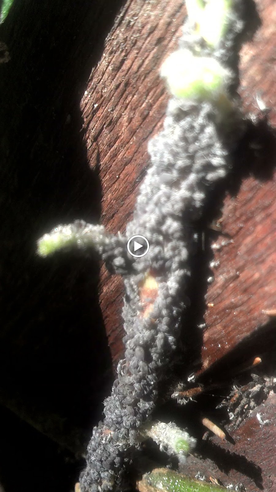 After trimming the Ivy that has been growing on a fence for years, a group of Grey aphids were uncovered.